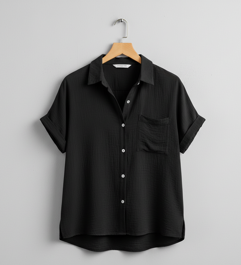 Effortless charm: Short rolled sleeves and a button-front add delightful details.