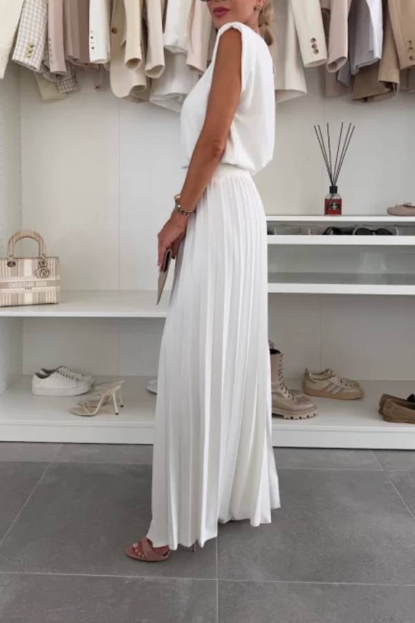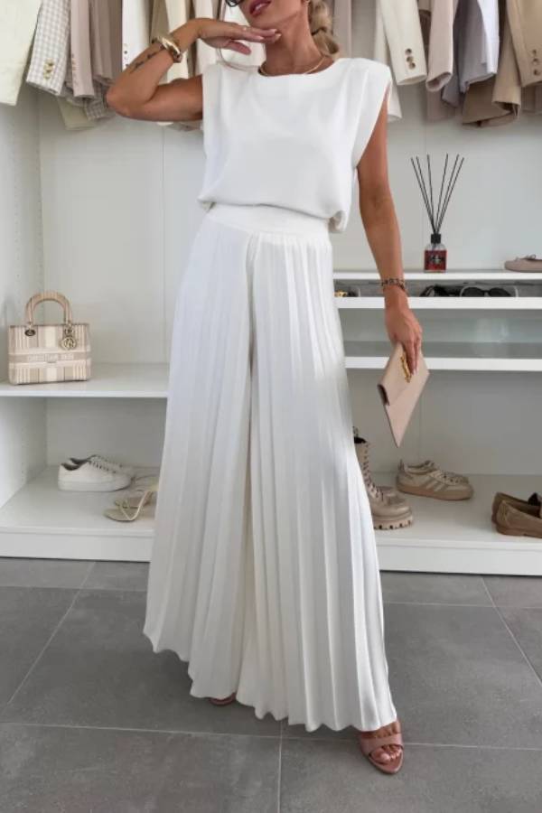 Fashionable Shoulder Pad Top & Pleated Pants Set – Clark Melbourne