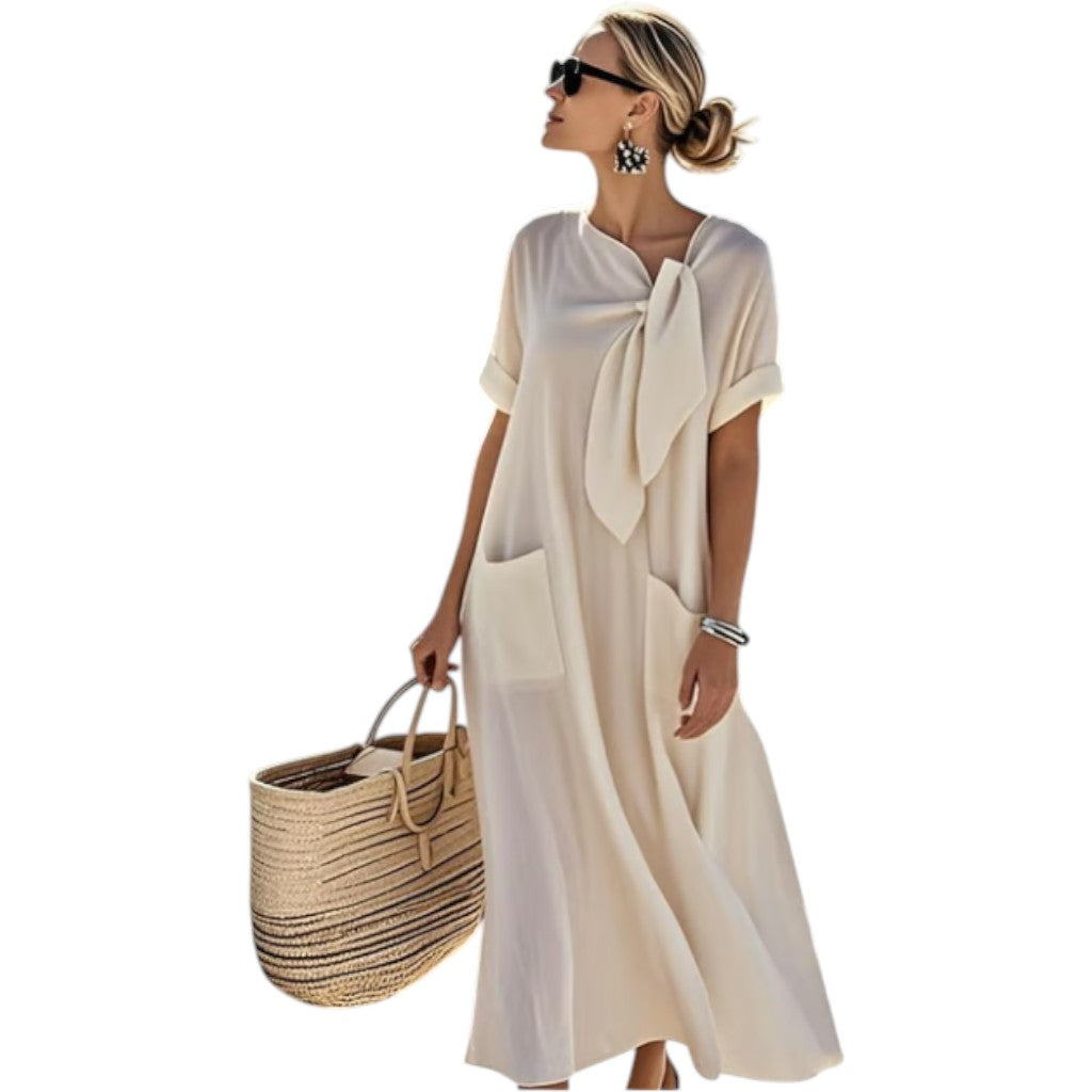 Elegant neck tie: Adds soft structure and refined detail.
