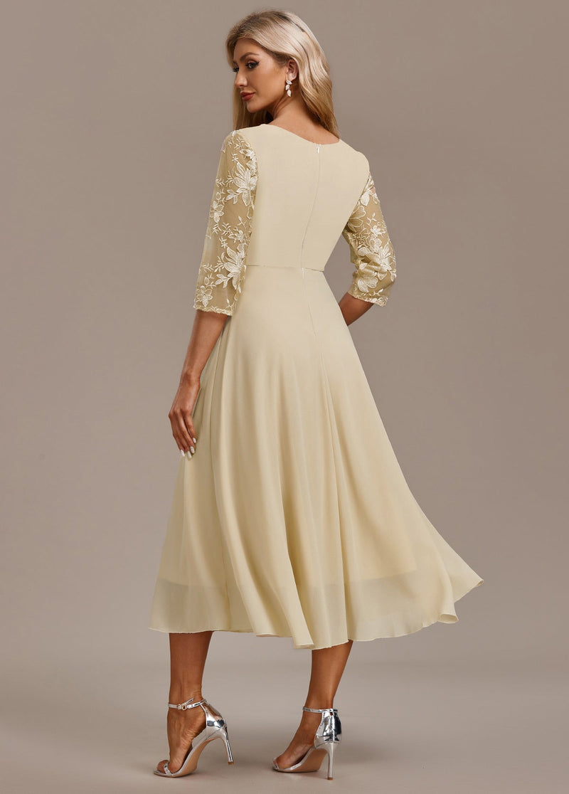 Karla | Champagne Embroidery 3/4 Sleeve Round Neck Dress