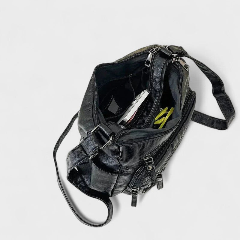 Spacious and organized: Multiple compartments and zippers keep things in place.