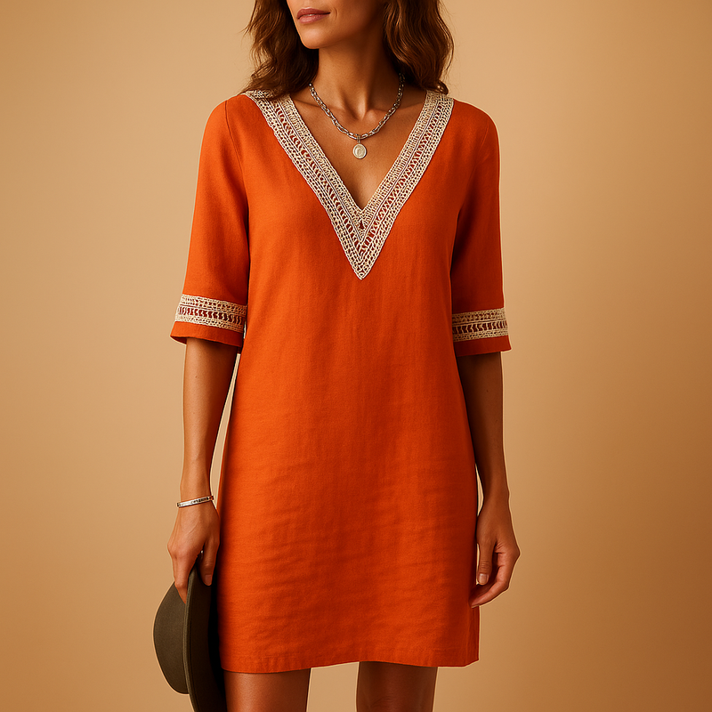 Summer Dress with V-Neck and Lace Details for Women | Elvira