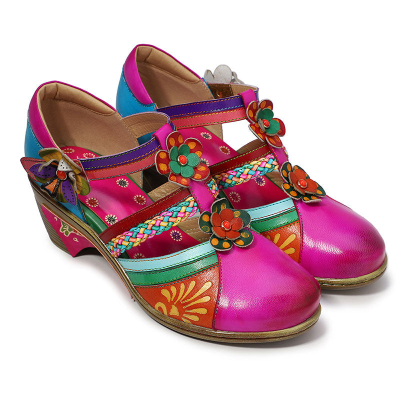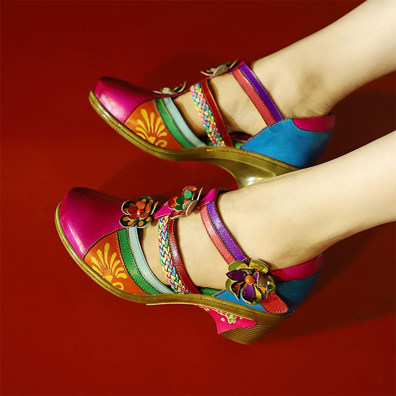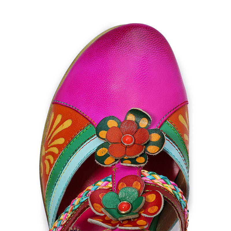 Designed for the discerning woman who appreciates artistry, these sandals combine vibrant colors and exquisite craftsmanship, elevating any ensemble with their unique charm and comfort.